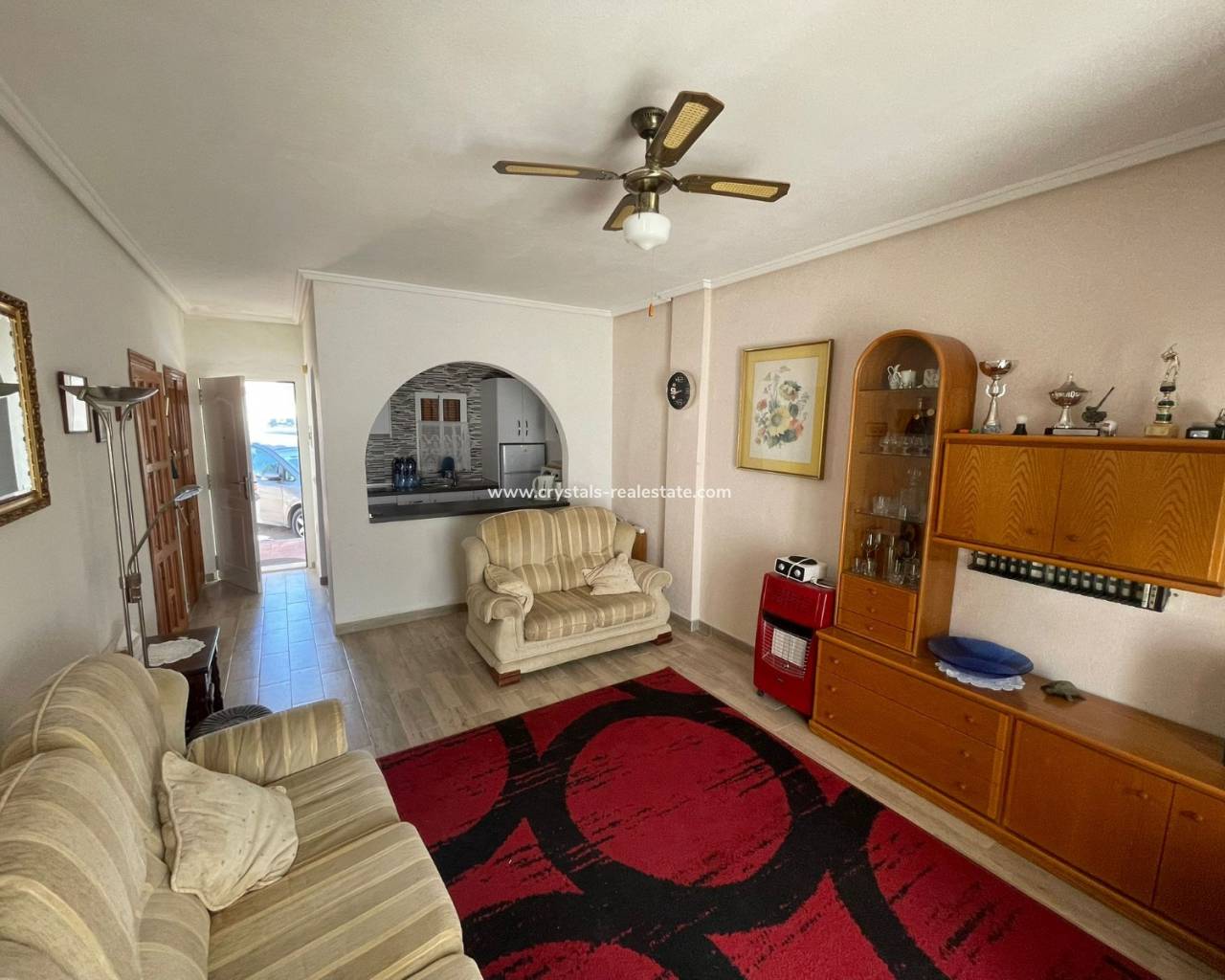 This charming end-of-terrace townhouse in Ciudad Quesada offers a well-designed layout, ideal for both permanent living and holiday use. The ground floor features a bright open-plan living room and kitchen area, creating a welcoming and sociable environment perfect for relaxing or entertaining. A convenient guest toilet is also located on this level. Upstairs, the property offers two comfortable bedrooms and a modern family bathroom, providing a peaceful and private space for rest. The property also benefits from a private solarium, where you can enjoy stunning views of the lakes and the sea—perfect for sunbathing, relaxing, or entertaining guests. Residents have access to a well-maintained communal swimming pool and landscaped garden area, ideal for cooling off on warm days or enjoying the outdoor surroundings. With its end-of-terrace position, the home benefits from additional natural light and a greater sense of privacy, making it an excellent choice for those seeking a stylish and practical property in a popular location.
